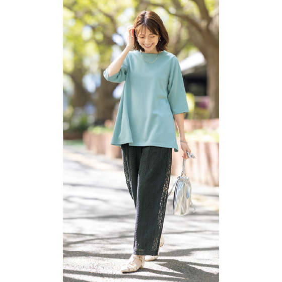 ●素材:ポリエステル50%・レーヨン45%・ポリウレタン5%(ニット、ダンボール・タテヨコのび、吸水速乾素材)