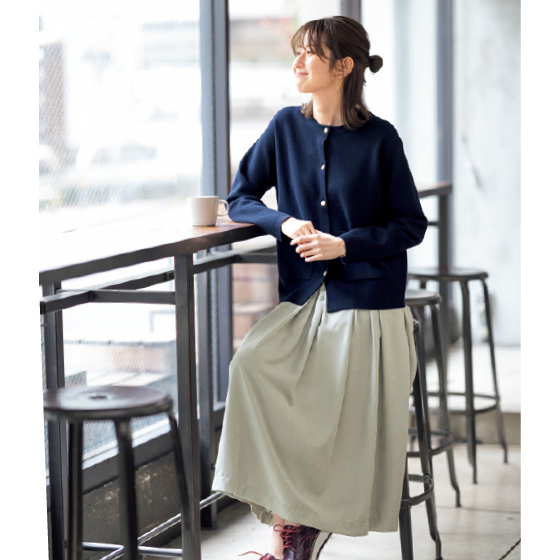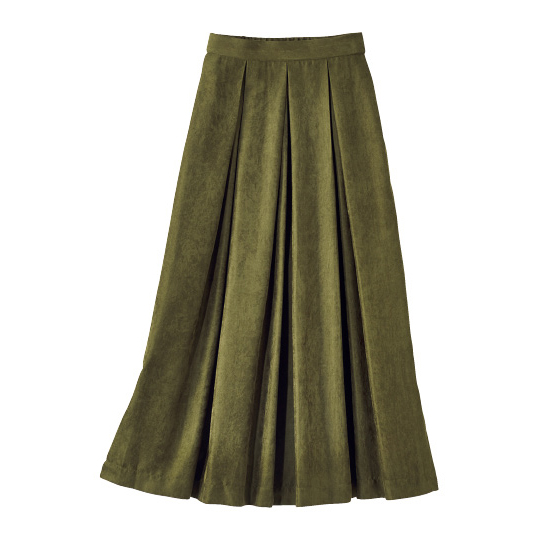 ベロアのような表面感のある素材がこれからの季節にぴったり。分量たっぷりのボックスタック使いで、ふんわりシルエットのスカートです。シワが気になりにくく、お手入れもラク。※春秋冬、3シーズン着用できます。
