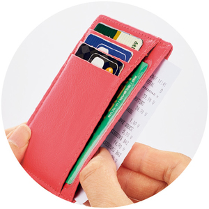 カードポケット6個、表・裏・中央にオープンポケットが各1個あり、すっきり分類収納できます。