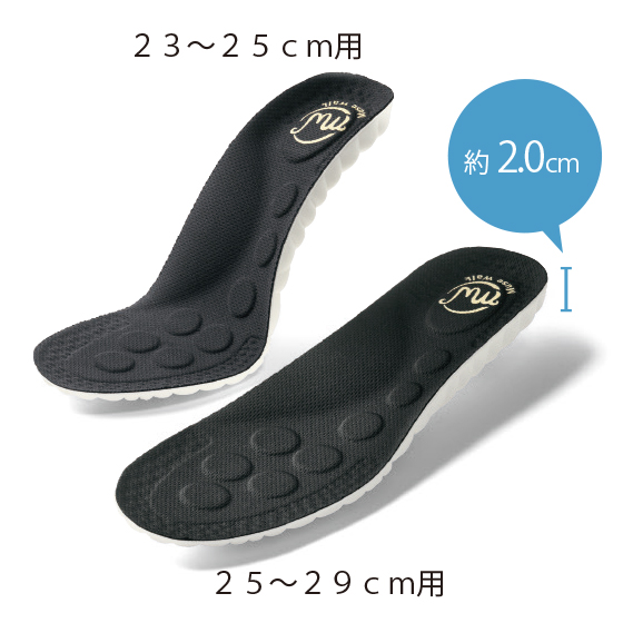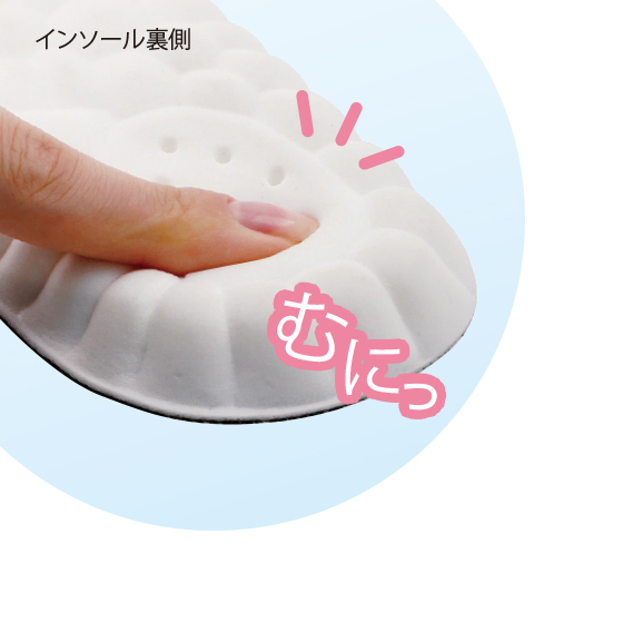 足にやさしい、ふかふかクッションのインソール。足裏の3点アーチを支えて歩行をサポート。