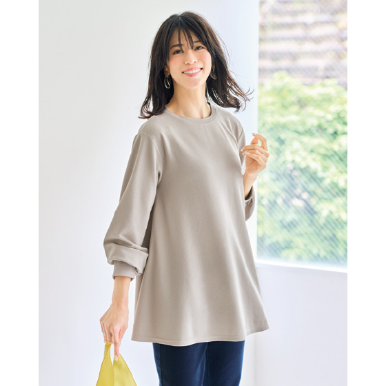 ご好評のチュニックをより着やすいサイズ感にアップデート。上品なフレアシルエットで腰回りもきれいにカバー。