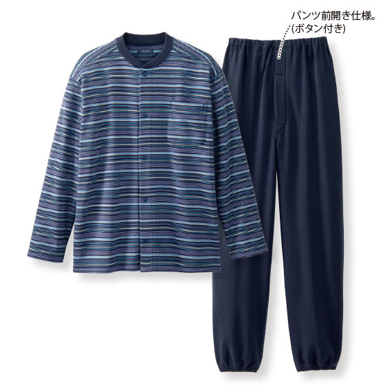 ●パンツ=ポケット1個付き、ウエストアジャスターゴム仕様、ゴム取替口あり、前開き(ボタン付き)