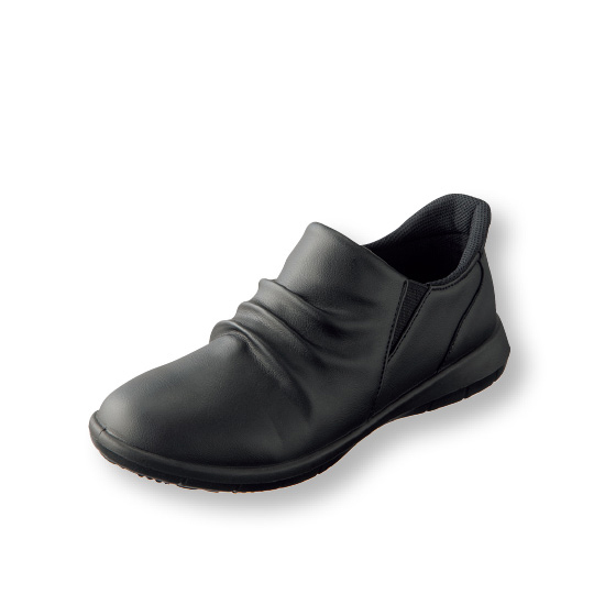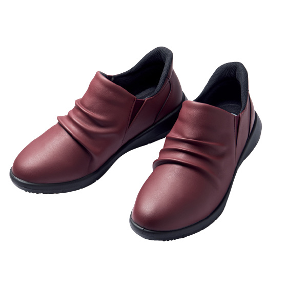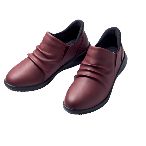 足をすべらせてスポッと履けるスリッポン。両サイドゴム入りで、脱ぎ履きスムーズ。