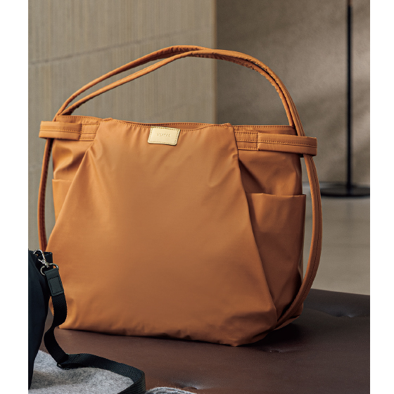 高密度で肌触りのよいはっ水タフタ。トラベルシーンでも活躍。