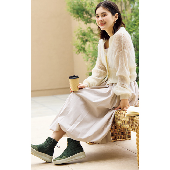 ボリュームのある厚底なのに“軽い”!ストレッチ素材のフィット感も心地いい。
