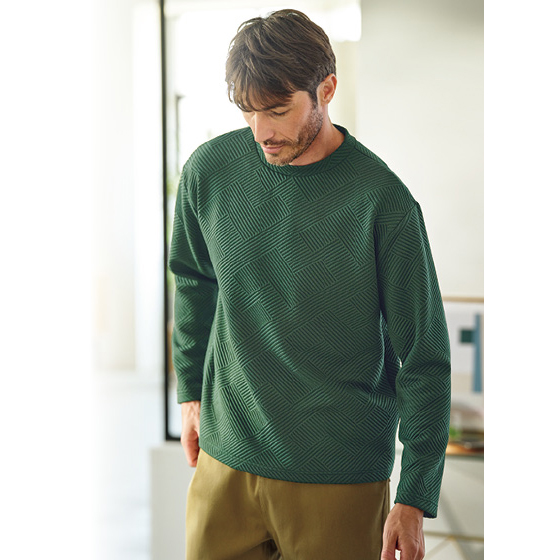 着やすい尾州ジャカード。ほどよい厚みのおしゃれ幾何柄。