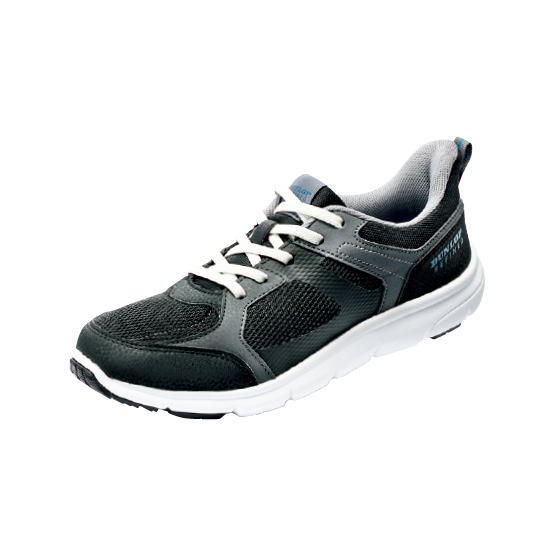 靴ひもはベロの両端を通ったゴム仕様で、そのままスムーズに着脱可能。