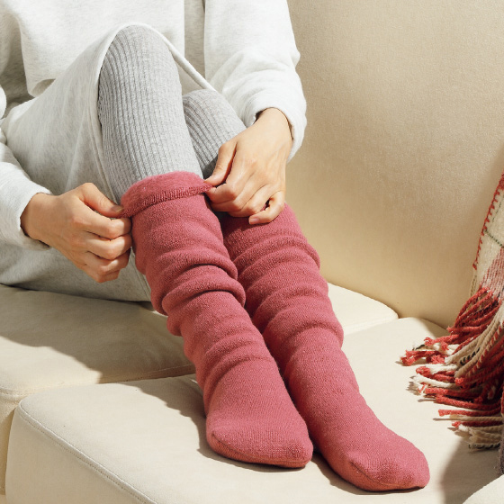 靴下の編み機を改良して誕生した『もちはだ』は、特許「ワシオ式起毛」による防寒肌着です。保温力と軽やかな着心地で、年齢を問わず、多くの方に愛用されています。