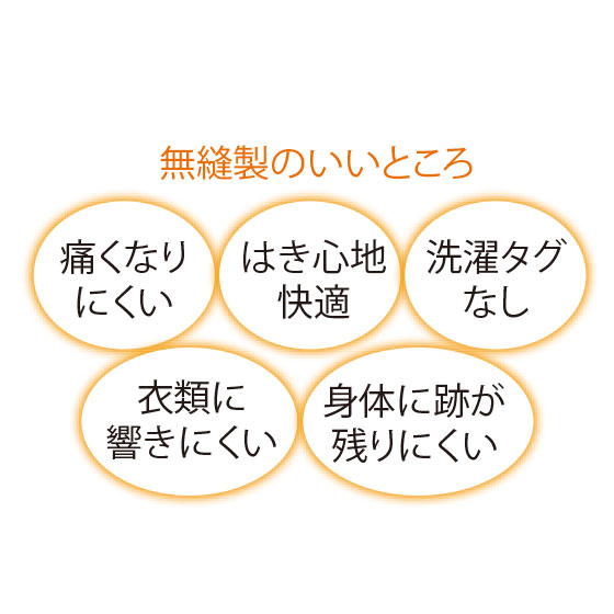 立体的に編み上げる製法だからウエスト以外に縫い目がなく、身体をやさしく包みます。