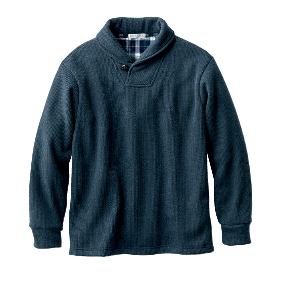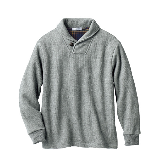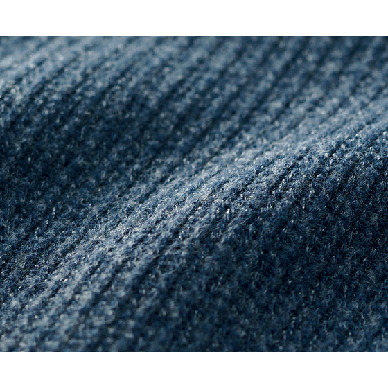 表面に凹凸のあるしなやかな素材。裏起毛で肌触りもふんわり暖か。小ぶりなショールカラーが上品。