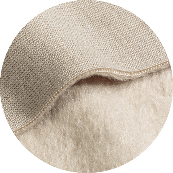 ●素材:ポリエステル60%・レーヨン35%・ポリウレタン5%(ニット、ダブルフェイス・タテヨコのび、裏起毛加工)