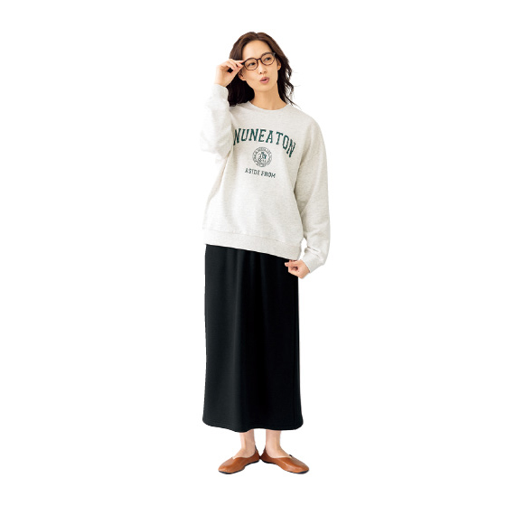 なめらかな風合いで、まるで毛布のような暖かさの裏起毛素材。ストレッチ性があり動きやすいのもポイント。ウエストはスピンドルで調節可能。後ろスリット入りで脚さばきが良い。