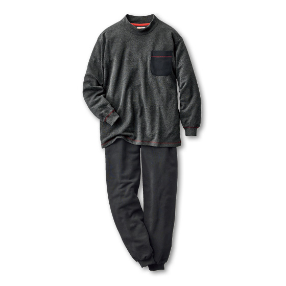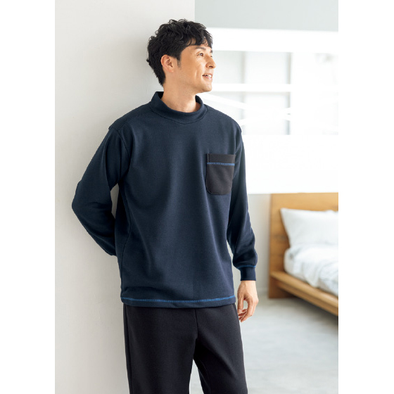真冬の寒さを解消するパジャマ。背肩部分は発熱わたを使用したキルトで袖口や足首はリブ仕様。節電対策にもぴったりのこだわりの暖かさです。