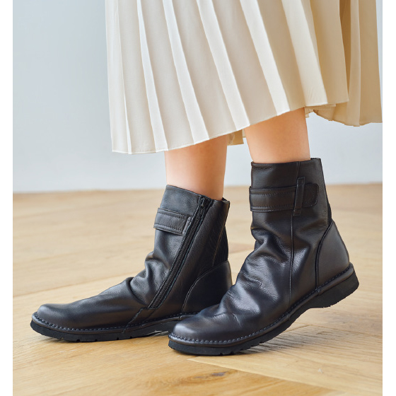 靴の街・神戸発の「ヴィタ・ノーヴァ」。革選びから裁断、縫製、仕上げまで熟練の職人が丁寧に手掛けています。履き口ファスナーで脱ぎ履きもスムーズ。総丈:約21cm(かかとの高さを含む23.0cmの場合)