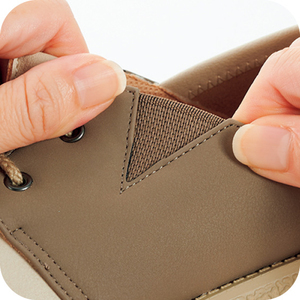 履き口ゴム仕様で着脱しやすく楽フィット。