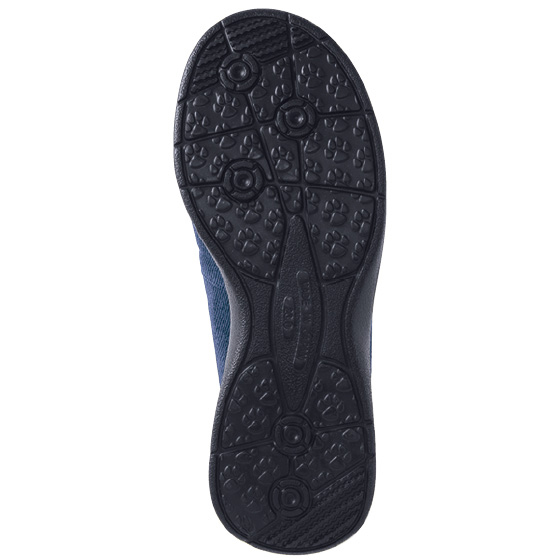 甲部分がのびて足にフィット。外反母趾対応の靴型を採用し、足裏アーチをしっかり支えます。軽量な豚革を使用しているので、ちょっぴり遠くまで歩けそうです。つま先上がりでつまずきにくく、軽くて摩耗に強いエバロンソール。