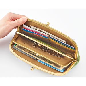 長財布:小銭が入るがま口とカードポケット付き。