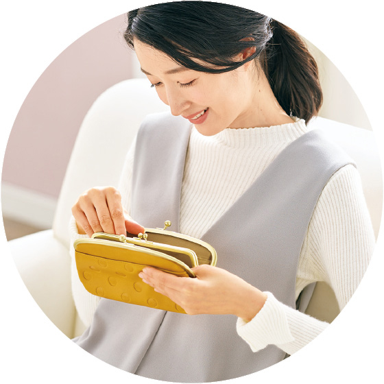2ツ折り財布:小銭の出し入れがラクながま口。