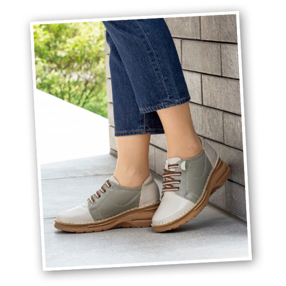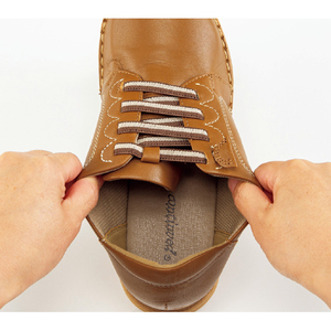 履き口が大きいので、脱ぎ履きが楽。ひもを結ぶ手間のない甲ゴム仕様。