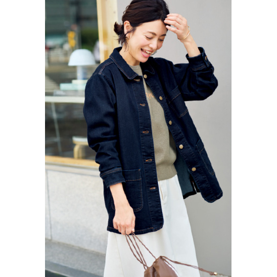 レーヨン混のしなやかデニムで着心地がよく、シルエットもやわらかなカバーオールです。安心感のある丈で大人が気取らずに着られ、季節を超えて活躍するヘビロテ服。