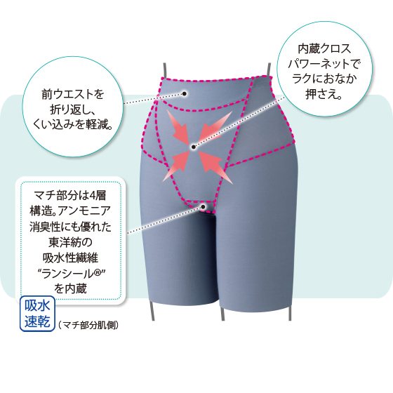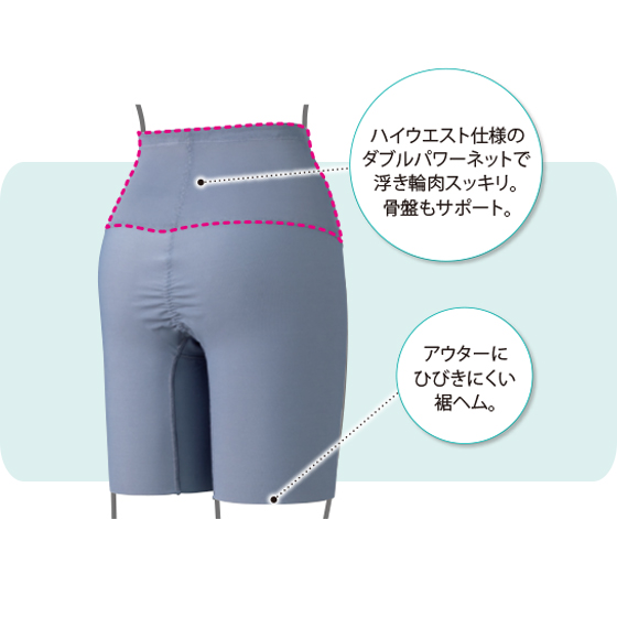 フリーカット仕様の綿混パワーネットでラクに引き締め、くい込みは軽減する設計。