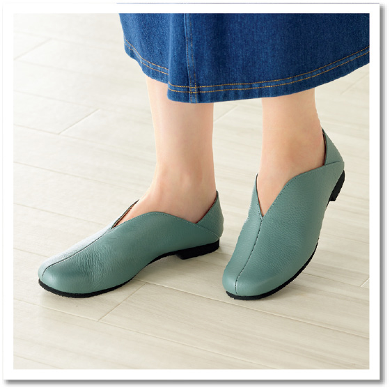 内側はウレタン貼りで足当たりやわらか。かかとを踏んでバブーシュ風にも!