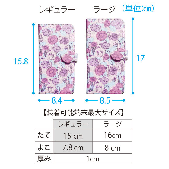 ●装着可能端末最大サイズ:レギュラー=約縦15×横7.8×厚1cm、ラージ=約縦16×横8×厚1cm