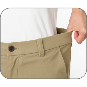 ウエストに伸縮性のあるインベルトを採用。おなか回りがゆったりラクで食後の窮屈感も軽減。