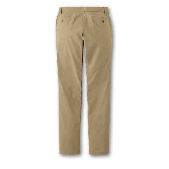 汗が素早く乾いてはき心地さわやか!ナチュラルな風合いの綿混素材に吸汗速乾加工を施しました。洗濯機で洗えるので、お手入れも簡単。ヒップラインをすっきり見せるダーツ入り。※着用シーズンは春・夏・秋です。