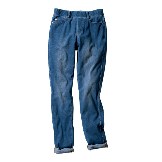 ●素材:インディゴ・ブルーブラック・ウォッシュドブルー=綿92%・ポリウレタン8%、ホワイト・ブラック・シャンブレーグレー=綿54%・ポリエステル38%・ポリウレタン8%(ニット、丸編み・タテヨコのび、インディゴ・ブルーブラック・ウォッシュドブルー=ブラスト・バイオウォッシュ加工)
