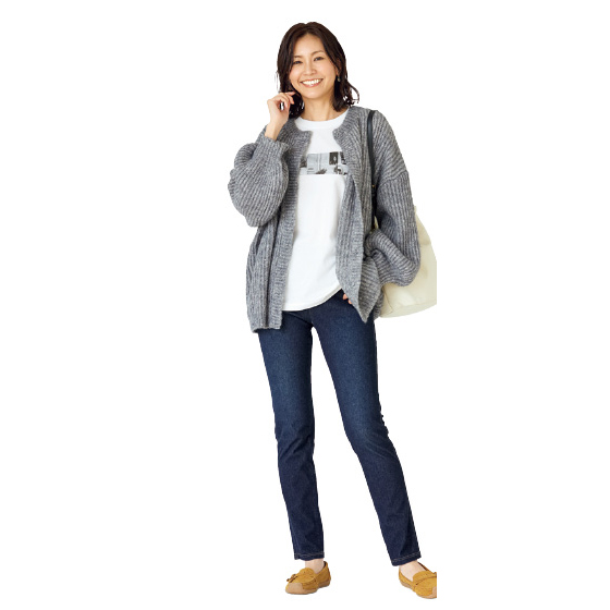 やわらかで心地よいニット素材。タテヨコに伸びてフィットし細身でもラクちん。※着用シーズンは春夏秋です。