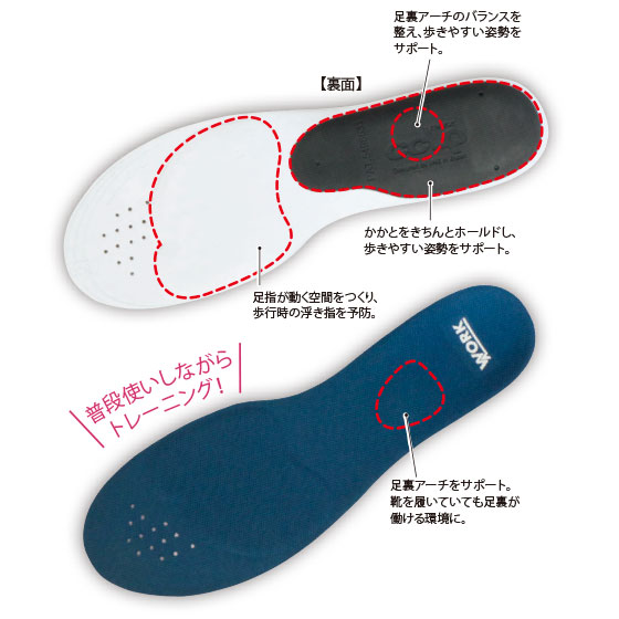 トップアスリートを足元から支えてきた長年の実績と技術に基づき、浮き指をサポートしながら、生活の中でうまく「足を使える」ように導くインソールです。通勤や立ち仕事などにもおすすめです。