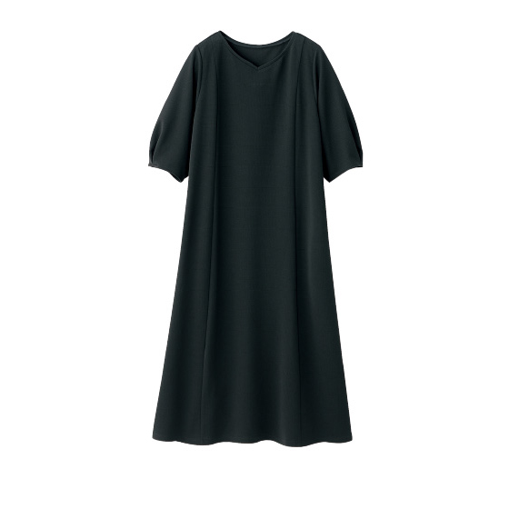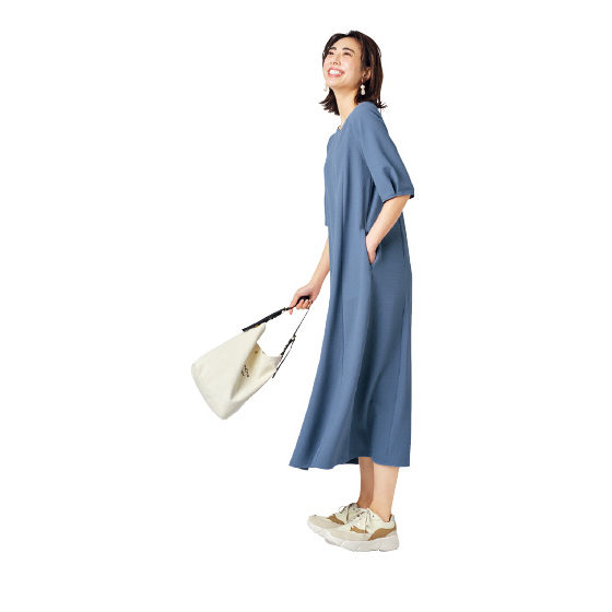 サラリと肌離れして体の線を拾いにくい素材。流れるようなドレープで上品なシルエット。360度伸びて着心地がよく、シワや毛玉、シルエット崩れも抑えるから外出先でもリラクシー。洗濯機で洗えて乾きが速く、乾燥機も使えるほどタフ素材。お手入れに手間なしでヘビロテ。