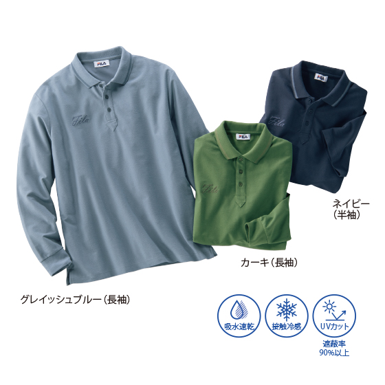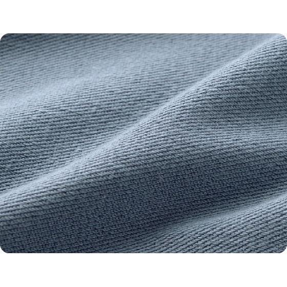 ●素材:綿50%・ポリエステル45%・ポリウレタン5%(ニット、裏毛(裏使い)・タテヨコのび、吸水速乾・接触冷感加工)、リブ部分=綿95%・ポリウレタン5%(ニット、フライス)、衿部分=綿100%(ニット、リブ編み)
