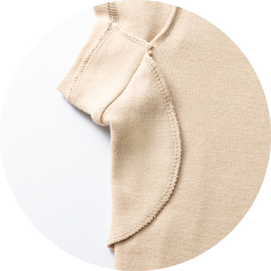 わきに汗取り付き。アウターの汗ジミ対策に。
