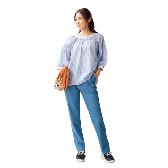 デニム見えしてのびのび動ける!汗ムレしにくい綿混ニット。