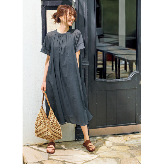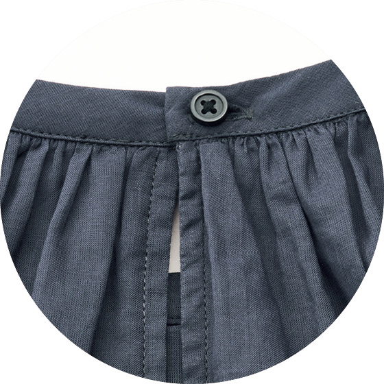 たっぷりギャザーのふんわりシルエットに、袖口のはしごレースで上品なアクセント。身頃は2枚仕立てにして、透けにくい工夫も。