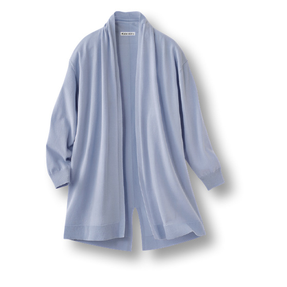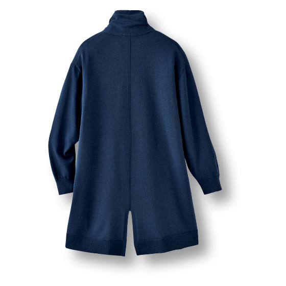 さらさらで肌離れのよい素材。ゆったりシルエットで体形カバーが叶い、首元をカバーしてUV対策できます。