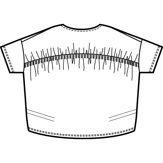 前は刺繍レース、後ろは美カットソー。ハイブリッドな素材使いと、鮮やかな切替テクに、ボヤージュらしいモード感。※カットソー部分はオーガニックコットン混。