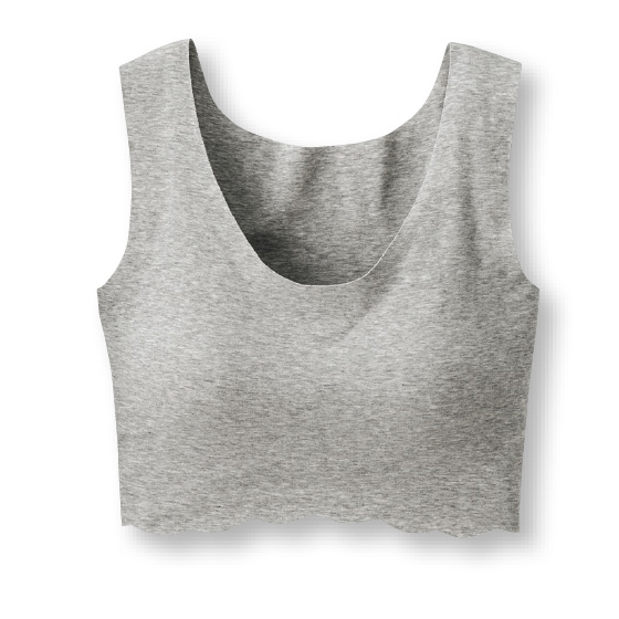 縫い目もゴムもなく、肌になめらか。完全無縫製カップ付きハーフトップ。
