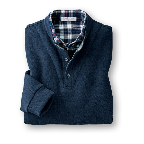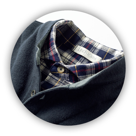 重ね着風のシャツ衿部分は綿100%の布帛素材。きちんと感があって外出にも映えます。