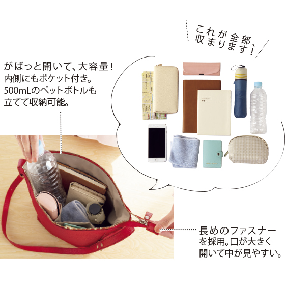 ●仕様:開閉=天ファスナー式、ポケット=外部にオープン式1個、内部にオープン式2個・ファスナー式1個付き