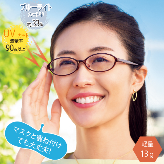 シーンを選ばずかけやすいクリアレンズなのに、紫外線を強力ブロック!より強い光域の可視光線も軽減します。こだわりのフレームとつるでかけ心地もgood♪