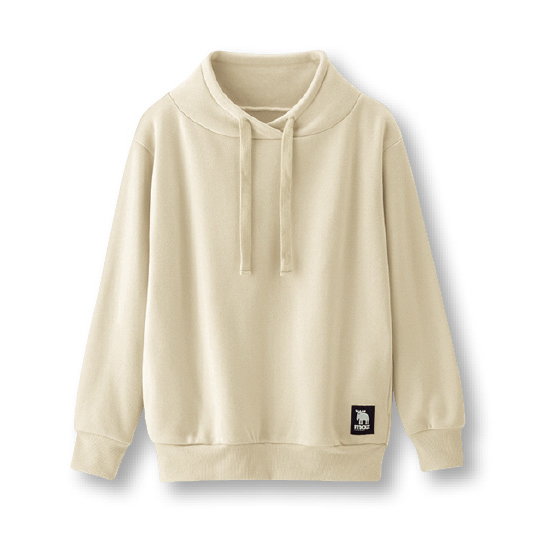 ちょっと横になりたいときにうれしい、フードを省いたパーカー風デザイン。よい高さの衿が首元をやさしく包んで、暖かな着心地です。フードがないから洗濯時にかさばりにくく、冬のデイリーに活躍。