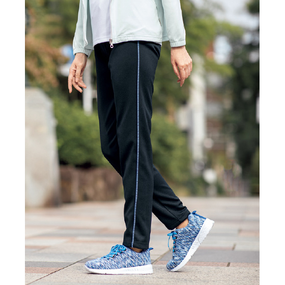 汗をかいても乾きが速くサラサラ快適なスムース素材。洗濯機で洗えて、お手入れも簡単。