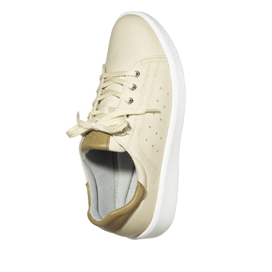 靴ひも通し部分がゴムなので、ほどかずに着脱OK。ふかふかのインソールで疲れにくいのも魅力。