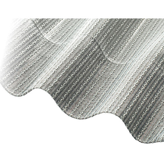 積水ナノコートテクノロジー(株)が持つ、特殊な加工技術「masa」により繊維1本1本にナノ単位で非常に薄く金属をコーティング。生地の特性、自然な風合いなどを変えず、金属のコーティングにより、直射日光を遮り、室温が上がるのを抑えます。