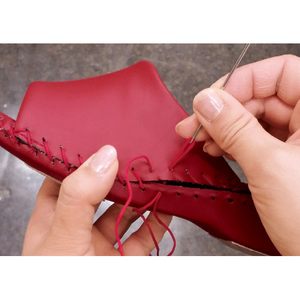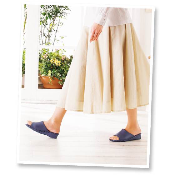 靴メーカーならではのこだわりで好評のパンジー室内履きに、おしゃれなヒール付きが登場! 約4.5cmの疲れにくいヒール高で、履き口は足入れしやすいゆったりめ。クセになりそうなやさしいフィット感は手づくりだからこそ。中敷に抗菌剤を施し、清潔さに配慮しているのもポイントです。 履き口ゆったりで足ラクちん。底面の前後2カ所にすべり止め付き。