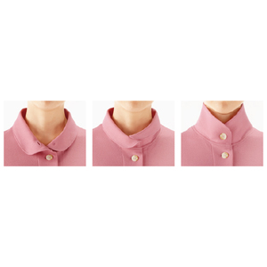 シャツカラー風、スタンドカラー風、ハイネック風に調整可能。衿を立てれば、寒さ対策に。