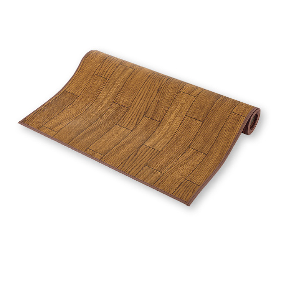 以前同じような木目調のマットを二枚使っていて、ずれてしまうのがストレスでしたが、これは一枚で横幅ピッタリでずれません。
